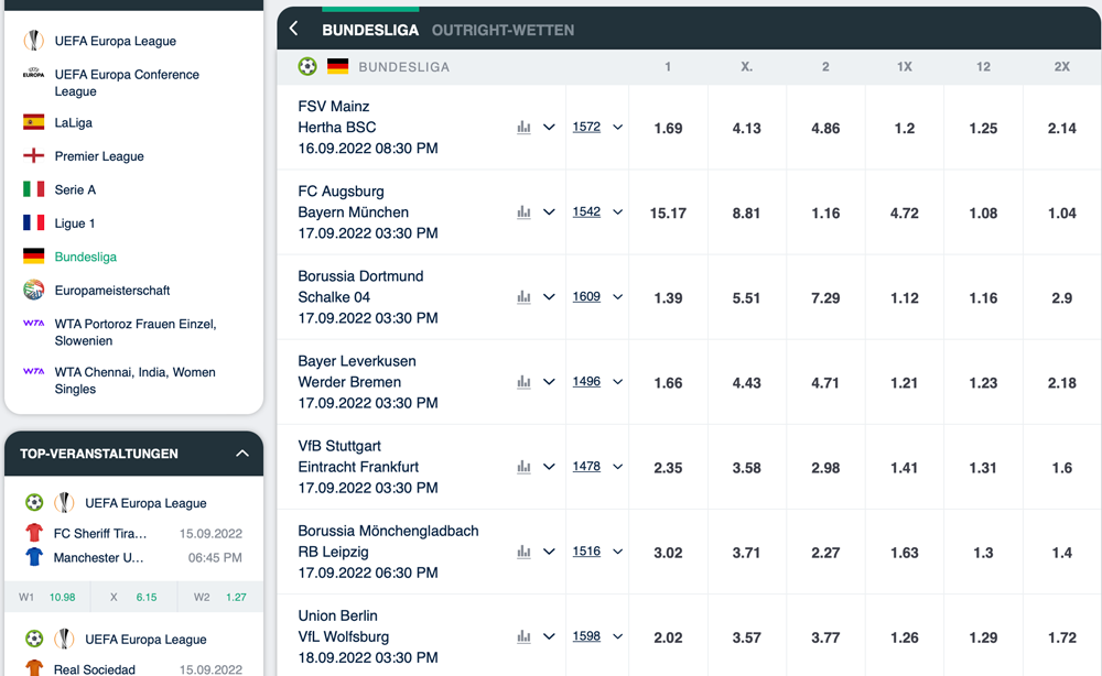 Über 600 Wettmärkte mit guten Quoten für die Bundesliga bieten gute Möglichkeiten um bei Ivibet zu Wetten