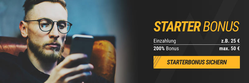 - Bonusauswahl zum Start: 200% bis 50 € oder 100% bis 150%