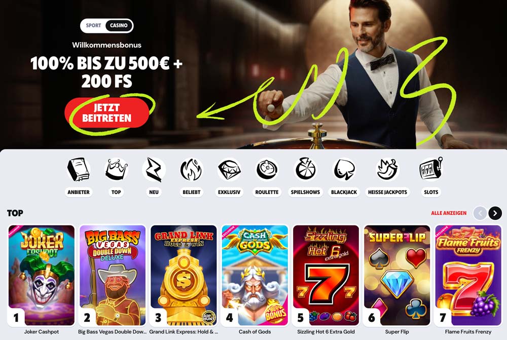 Zusatzangebot: Vielfältiges Casino-Angebot mit attraktiven Boni