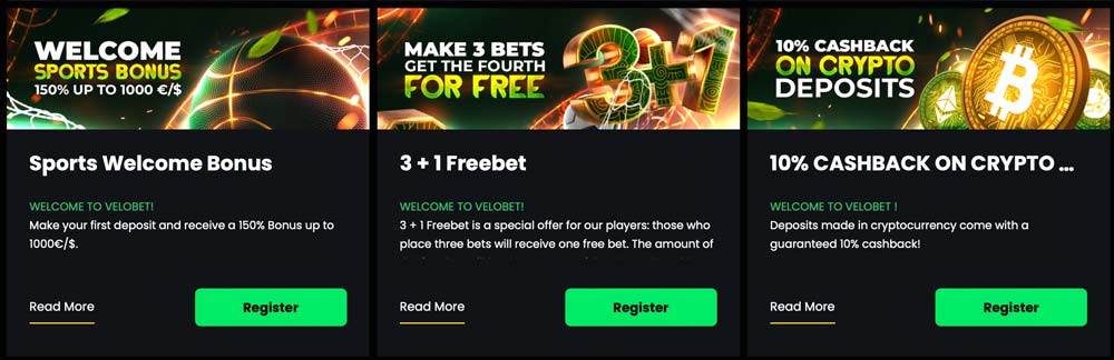 Wie die Konkurrenz buhlt auch Velobet mit einem Einzahlbonus um die Gunst der potenziellen Neukunden ab 18 Jahren. Und 150% bis zu 1.000 Euro schon eine echte Ansage, um sich am Markt von zahlreichen Wettbewerbern nach oben abzuheben.