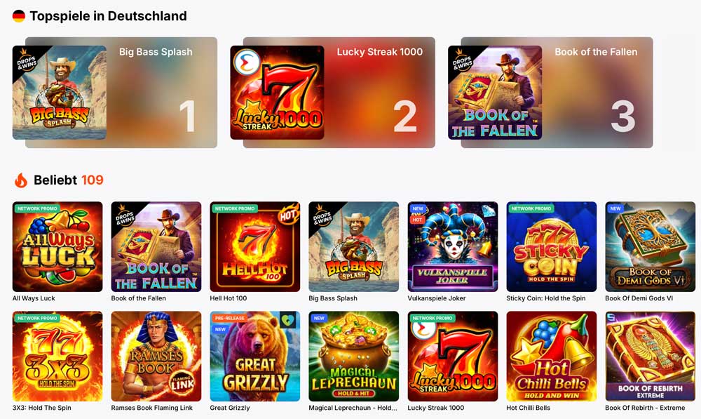VulkanSpiele überzeugt mit einer klaren und gut durchdachten Benutzeroberfläche, die einen schnellen Zugriff auf Wettangebote ermöglicht.