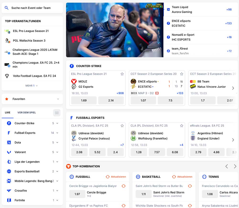 Live-Wetten auf Gaming-Events und Turniere bringen zusätzliche Spannung und sprechen besonders junge Wettfreunde an.